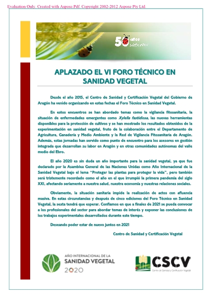 Obviamente, la situación sanitaria impide la realización de actos con afluencia masiva. En estas circunstancias y después de cinco ediciones del Foro Técnico en Sanidad Vegetal, la sexta tendrá que esperar