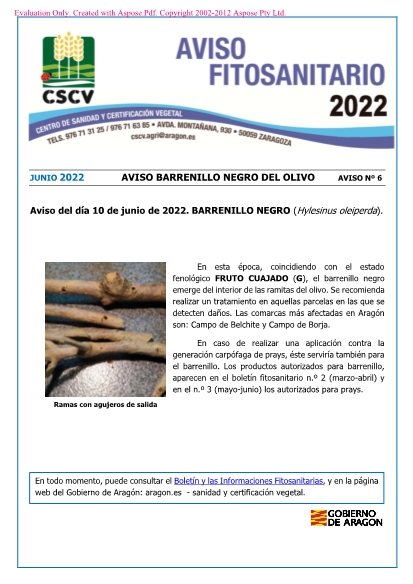 + Información complementaria en Boletín fitosanitario nº 3 con productos autorizados para prays.