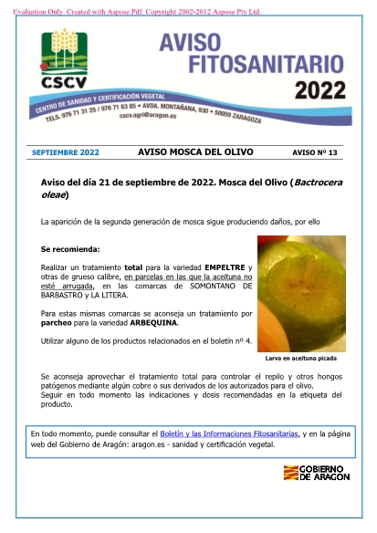 Avisos Insectos Fitosanitarios de síntesis Olivo Hongos y Oomicetos