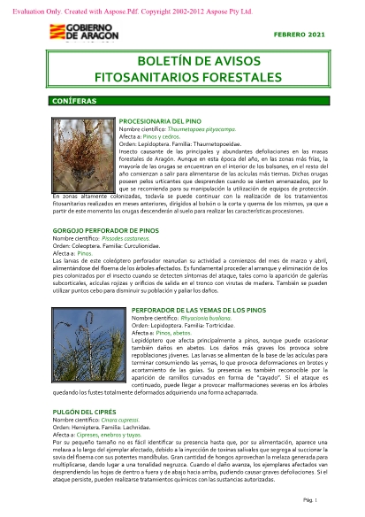 Boletín de avisos fitosanitarios forestales. Febrero 2021