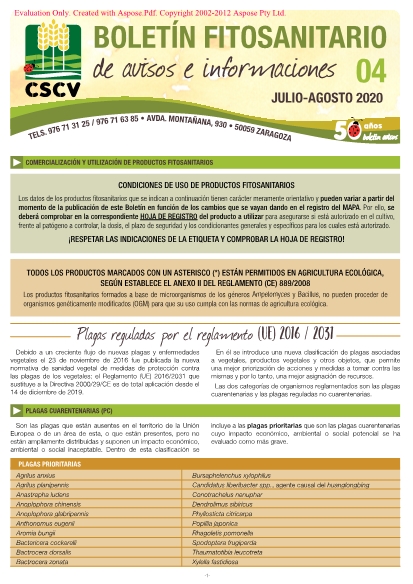 Boletín fitosanitario de avisos e informaciones. Julio - Agosto 2020