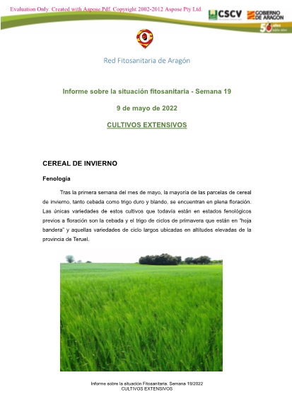 Avisos Insectos Hongos y Oomicetos * Cereales de invierno Alfalfa Maíz Colza Guisante