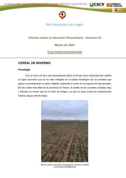 Avisos Insectos Hongos y Oomicetos Malas hierbas * Cereales de invierno Alfalfa Colza Guisante