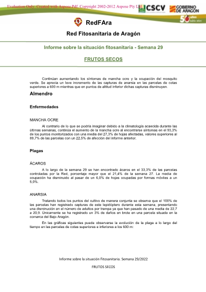 Avisos Insectos Ácaros Hongos y Oomicetos Almendro