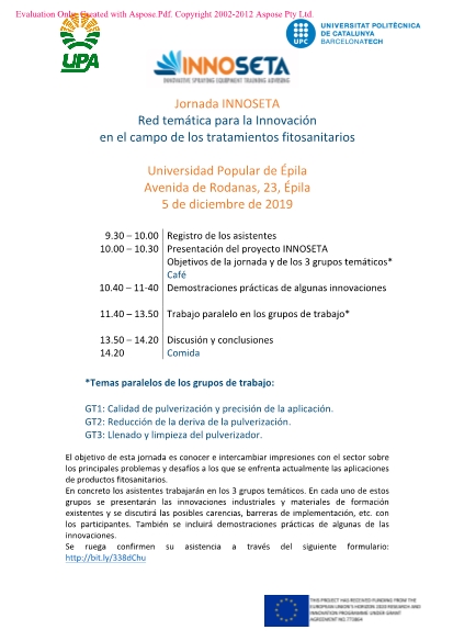 Red temática para la Innovación en el campo de los tratamientos fitosanitarios. Universidad Popular de Épila. 5 de diciembre de 2019 A partir de las 10 h. a.m.