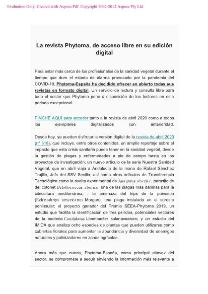 La revista Phytoma, de acceso libre en su edición digital