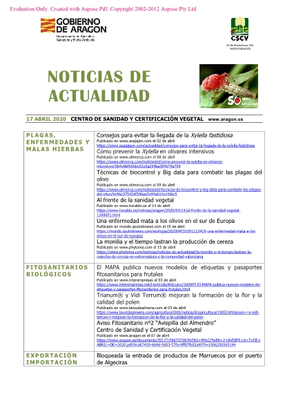 17 de abril de 2020. Recopilación semanal de noticias sobre agricultura.