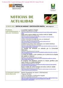 Noticias * Frutales Insectos Hongos y Oomicetos Bacterias Normativa europea Ensayos Agricultura ecológica Formación Almendro Olivo Vid * Cereales de invierno Arroz * Hortícolas Factores ambientales Manzano Melocotonero * Riego * Fertilización