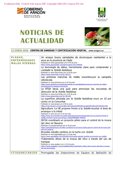 12 de junio de 2020. Recopilación semanal de noticias sobre agricultura.