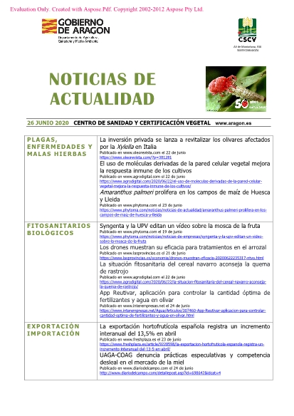 26 de junio de 2020. Recopilación semanal de noticias sobre agricultura.