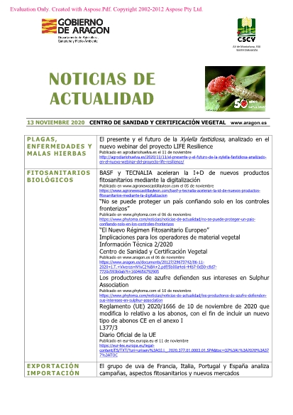 13 de noviembre de 2020. Recopilación semanal de noticias sobre agricultura.