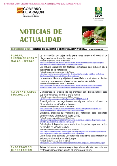 12 de febrero de 2021. Recopilación semanal de noticias sobre agricultura.