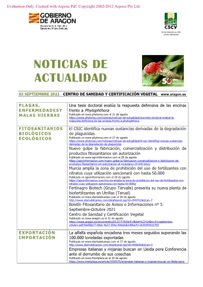 3 de septiembre de 2021. Recopilación semanal de noticias sobre agricultura.