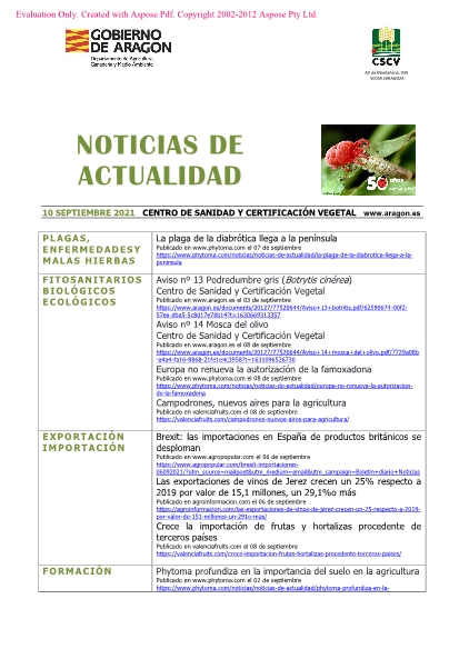 10 de septiembre de 2021. Recopilación semanal de noticias sobre agricultura.