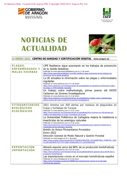 14 de enero de 2022. Recopilación semanal de noticias sobre agricultura.