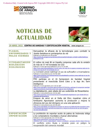 29 de abril de 2022. Recopilación semanal de noticias sobre agricultura.