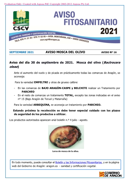 Avisos Insectos Olivo