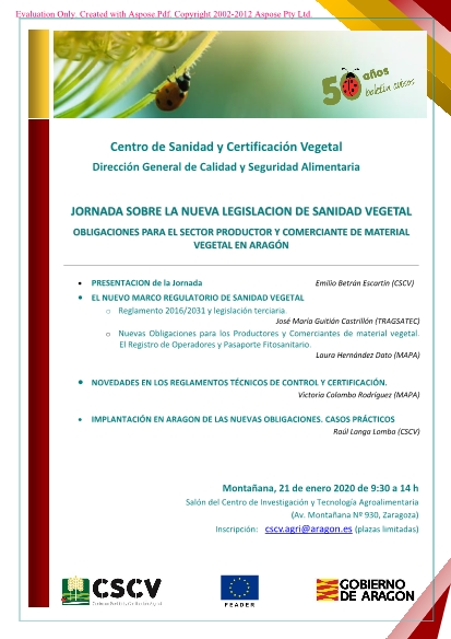 La inscripción es obligatoria en el correo cscv.agri@aragon.es