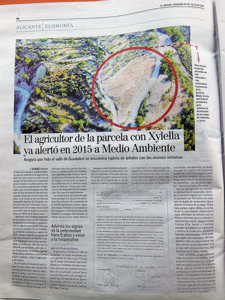 El agricultor de la parcela con Xylella en Guadalest (Alicante) ya había alertado a Medio Ambiente