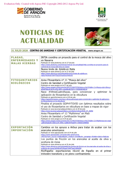 31 de julio de 2020. Recopilación semanal de noticias sobre agricultura.