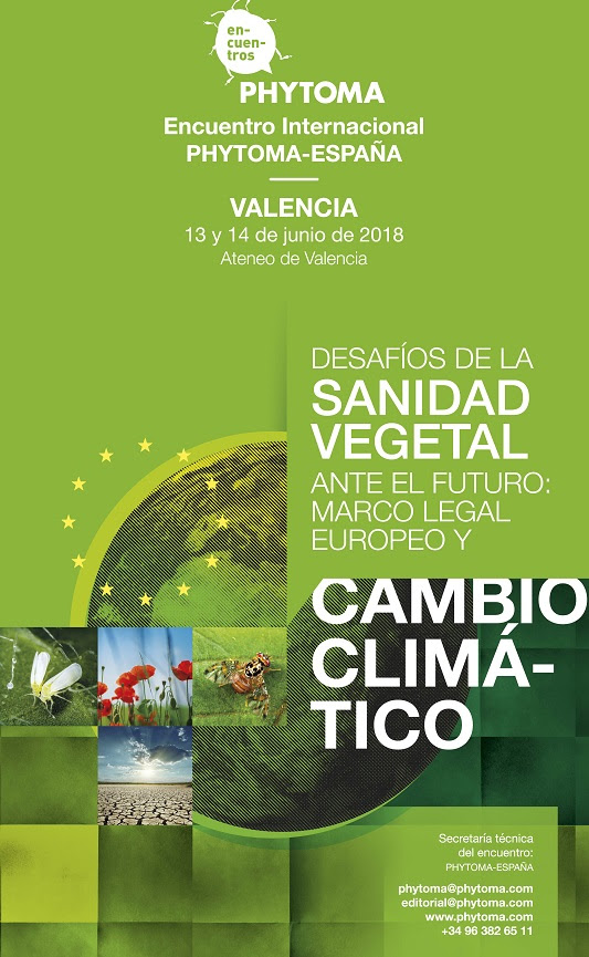 Valencia, 3 de abril.- Coincidiendo con su treinta aniversario, Phytoma-España ha organizado un Encuentro Internacional que abordará dos de los aspectos que marcarán el futuro de la agricultura y la sanidad de los cultivos. Por un lado, el marco legal que regirá la Sanidad Vegetal, que contará con la participación de importantes representantes de los aparatos legisladores de Europa y España; por otro, las consecuencias del cambio climático en la Sanidad Vegetal en su conjunto, en el que los principales expertos nacionales e internacionales analizarán el impacto en cada uno de sus campos de acción: enfermedades, plagas y malas hierbas.